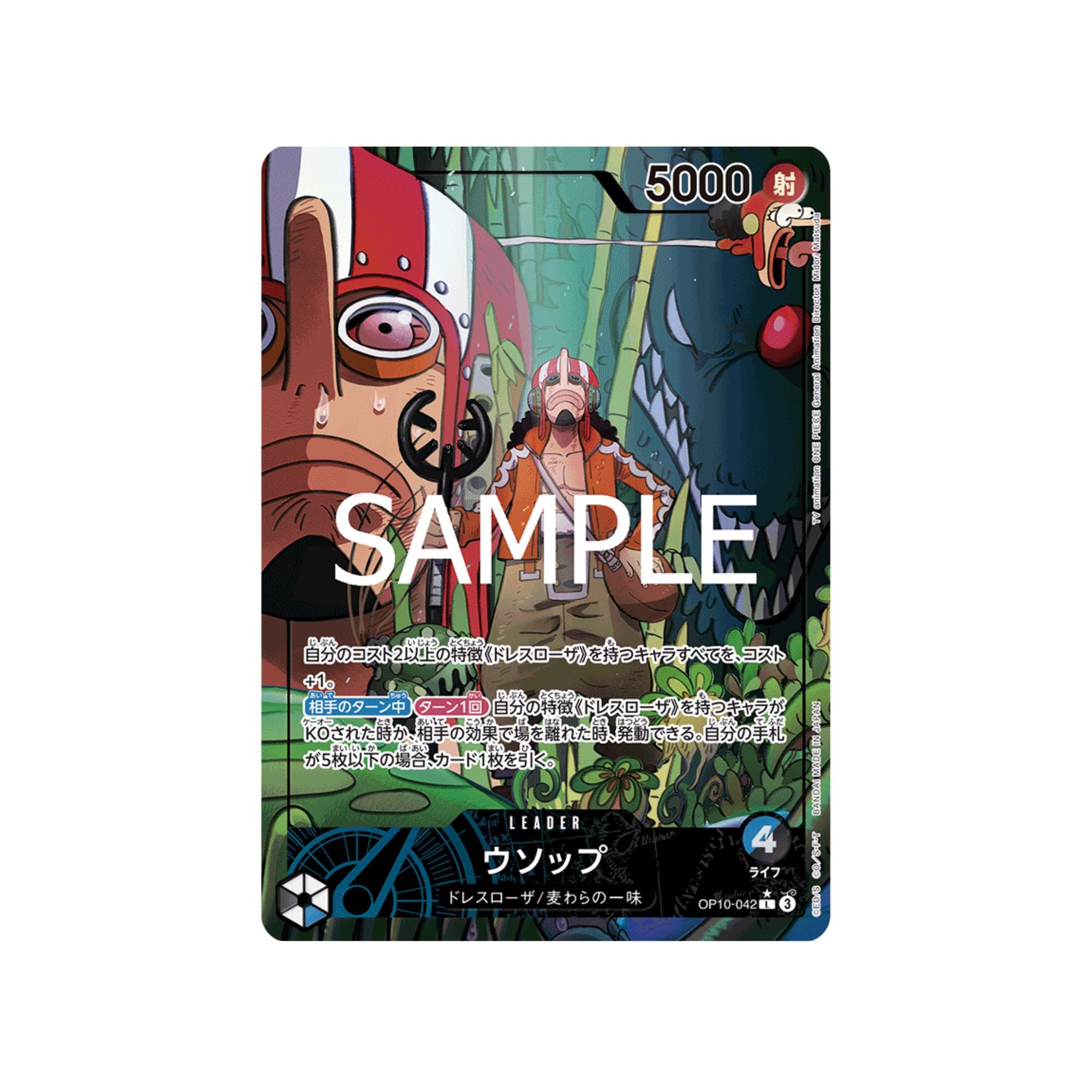 All of your {Dressrosa} type Characters with a cost of 2 or more gain +1 cost.[Opponent's Turn] [Once Per Turn] This effect can be activated when your {Dressrosa} type Character is removed from the field by your opponent's effect or K.O.'d. If you have 5 or less cards in your hand, draw 1 card.